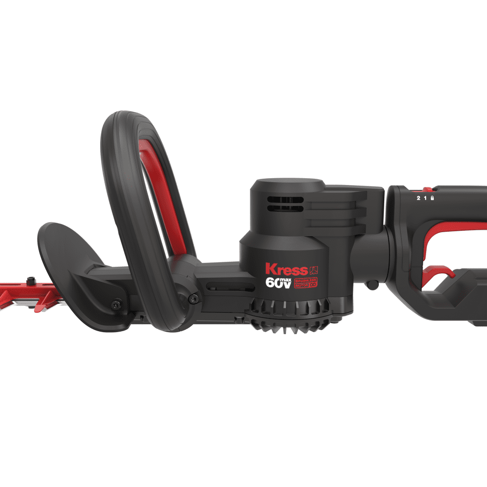 The 67 cm-long blade of the Kress KG260E cordless hedge trimmer can slice branches up to 34 mm-thick, It is lightweight design and perfectly balanced.