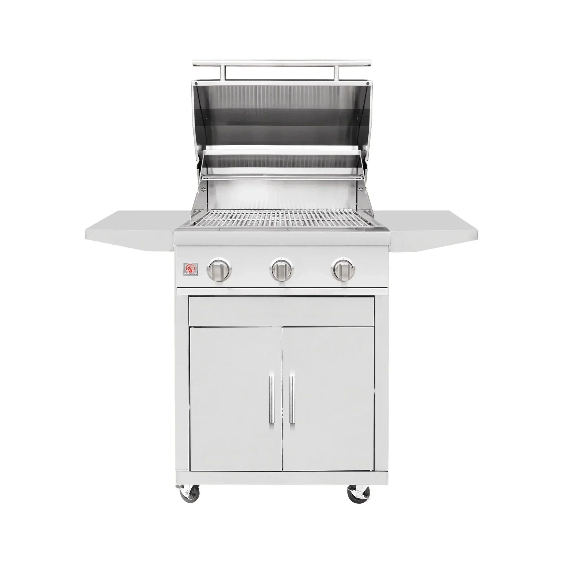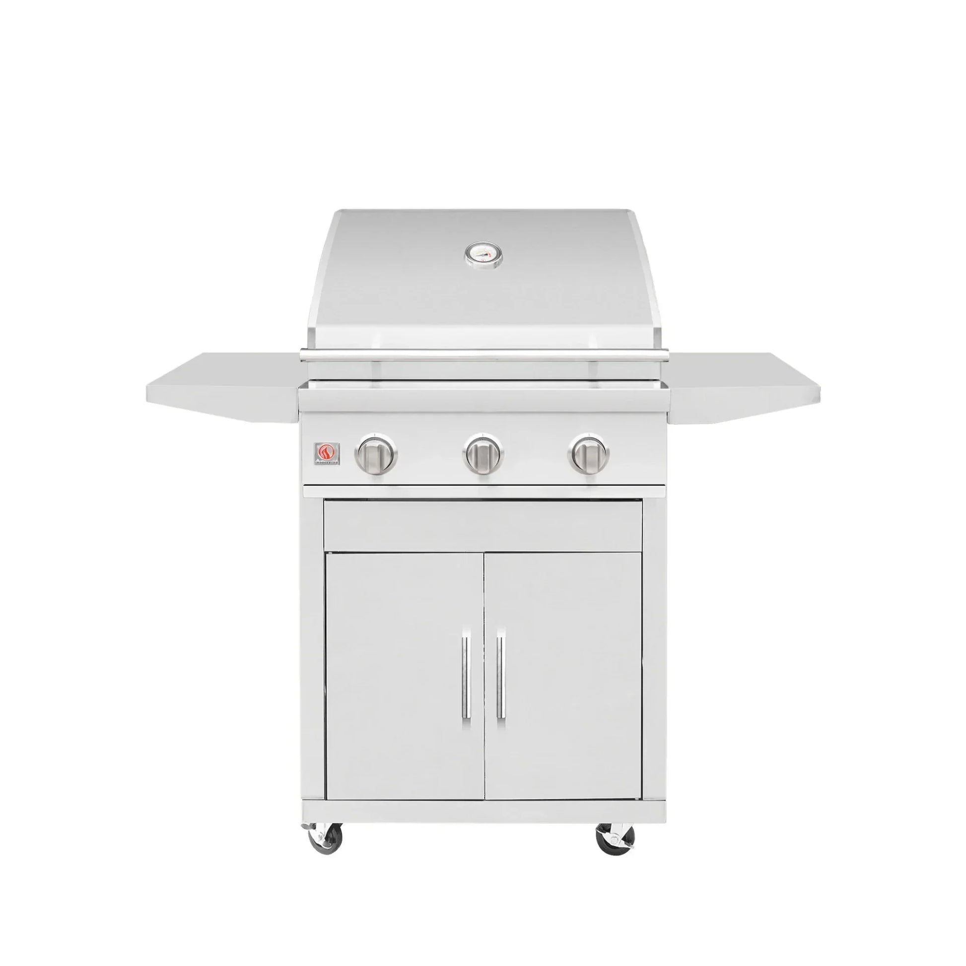 Perfectly sized for patios, condo balconies, and compact outdoor kitchens, the Summerset Sizzler 25-Inch Freestanding Gas Grill delivers commercial-grade performance in a space-saving footprint. Constructed with corrosion-resistant #443 stainless steel and powered by two 12,000 BTU #304 stainless steel tube burners, this grill is built to handle everyday use in both residential and multi-unit environments. With no need for electrical power and a rugged, low-maintenance design, it’s ideal for remote or shared-use setups. Paired with the custom 25-Inch Summerset Deluxe Cart, it becomes a fully mobile outdoor cooking station — complete with fold-down shelves, secure storage, and easy maneuverability.